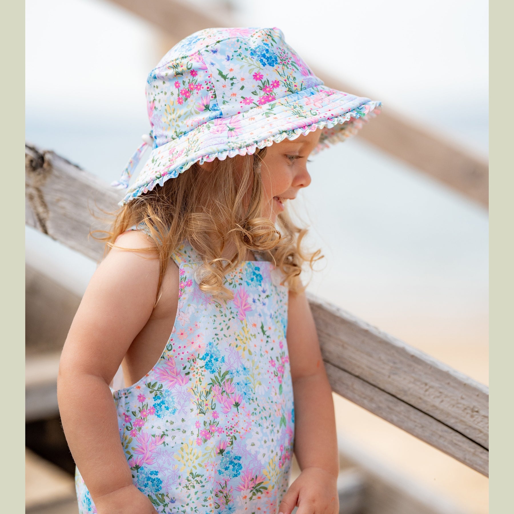 A charming finishing touch for long days in the sun, this sweet swim hat features our soft painterly floral print and a pretty frill brim for a playful, feminine look. Perfect for pairing with matching swimwear from the collection, it’s designed to keep her protected and stylish at once.