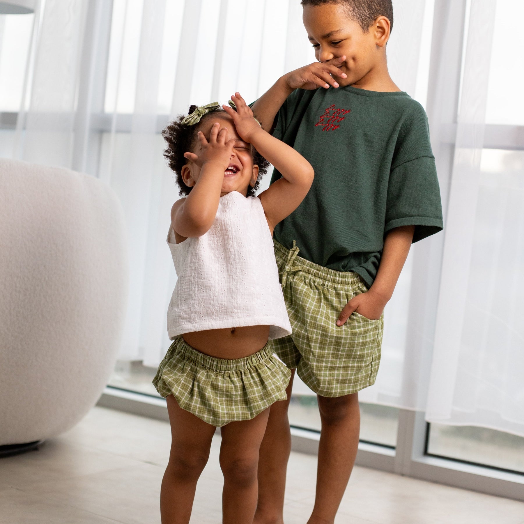 Cotton bloomers with a soft elastic waist in our Thyme fabric.