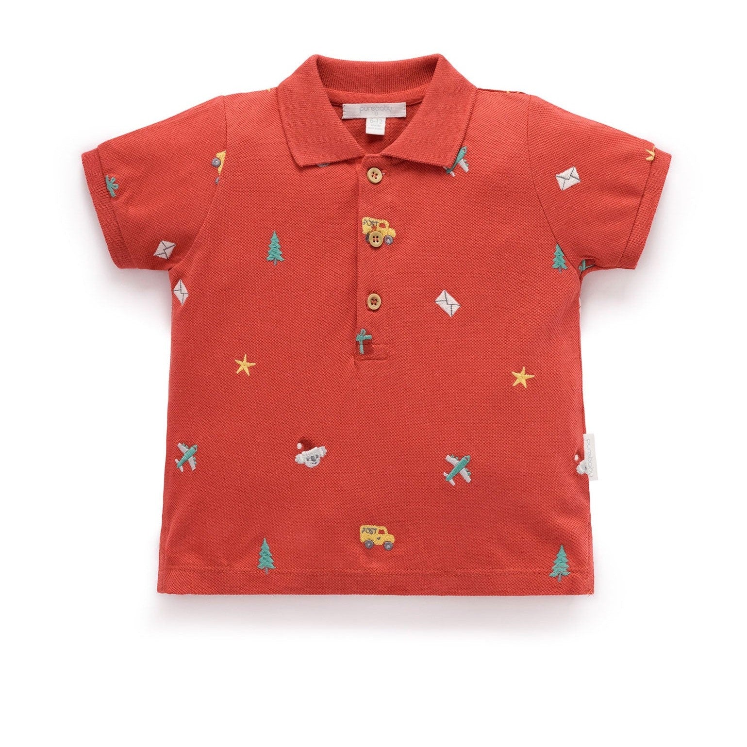 Christmas Polo is a classic addition to your little ones festive wardrobe. Featuring an all over embroidery of fun Christmas themed motifs, with a ribbed collar. Made from the softest 100% Organic Cotton pique for a soft, breathable summer shirt.