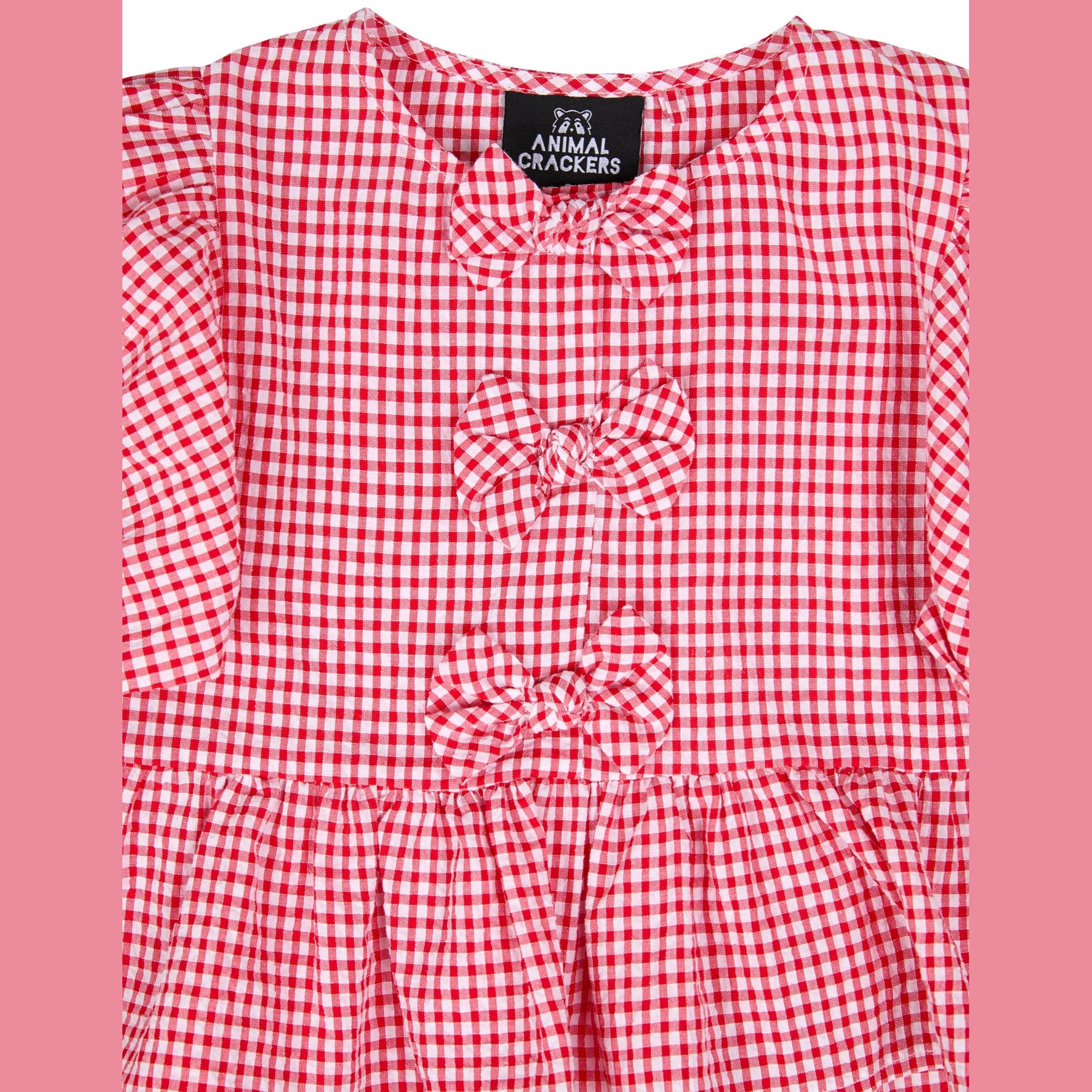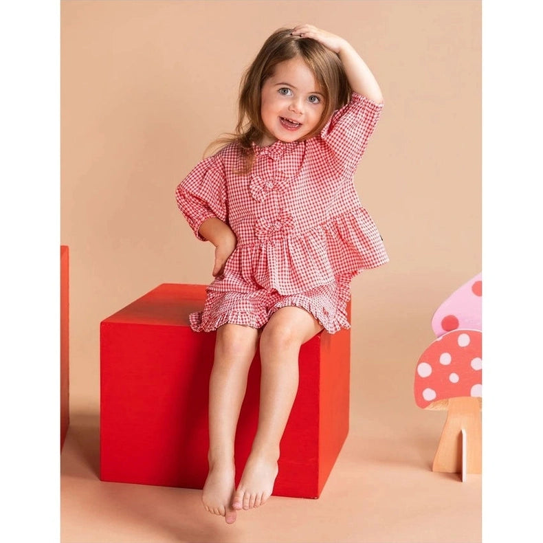 The Checkered Top by Animal Crackers is the most adorable piece for your tiny human this summer! Made from 100% cotton red check fabric, this top features centre front bow detail, puff sleeves and gathered hem panel. Paired back with the Checkered Short, it will be the ultimate summer outfit.