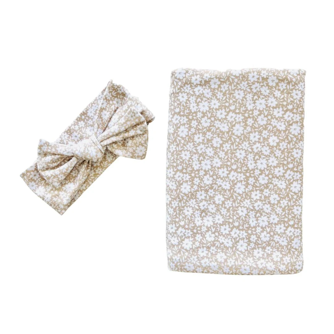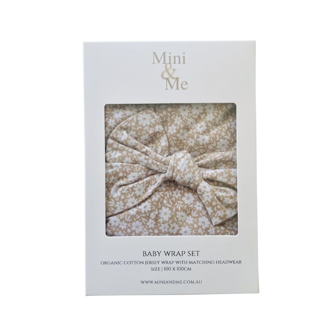 The set includes a matching topknot beanie, making it an adorable addition to your newborn's birth announcement. With its generous 120 x 120cm size, this wrap is versatile enough for swaddling, tummy time, pram rides, and more.