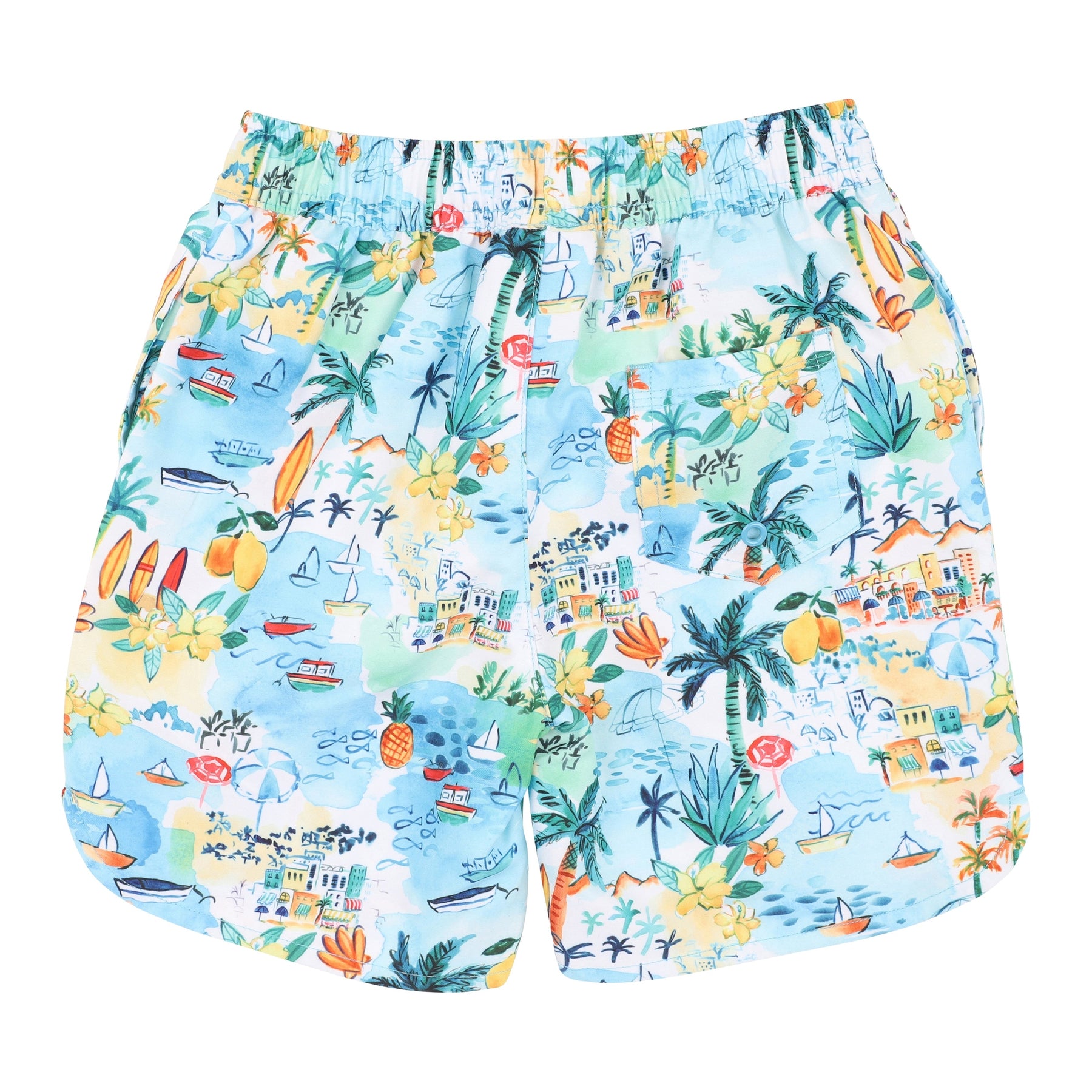 Perfect for sunny days by the water, these swim shorts bring the colour and charm of the coast to life with our hand-illustrated Seaside print. Whether he’s diving in or drying off, they’re a comfy and playful addition to his summer wardrobe — and pair perfectly with the matching rash top for head-to-toe style.