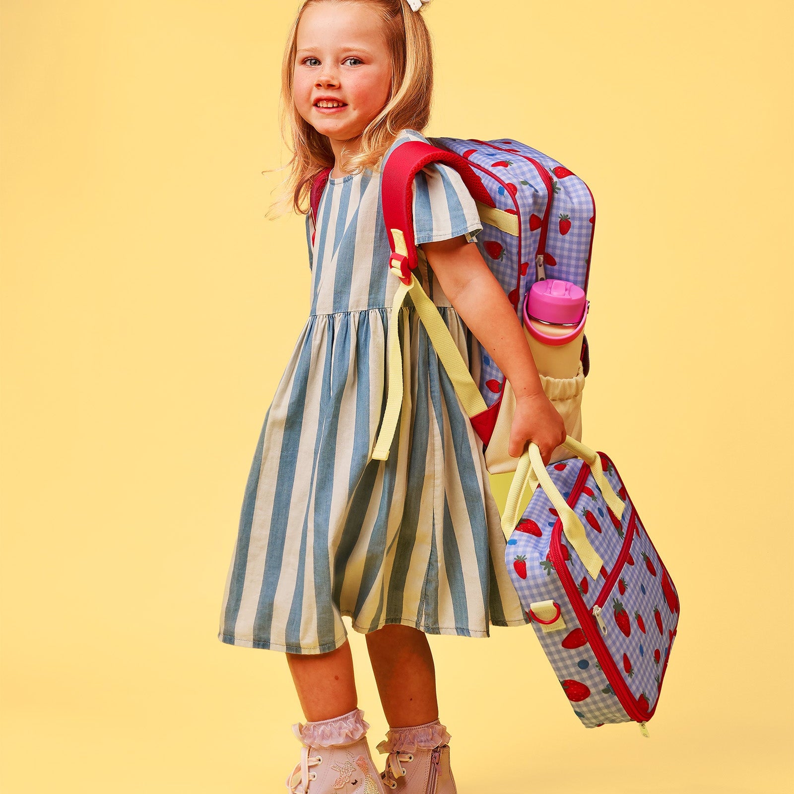 It's got a handy zipper pocket on the front, space for ALL the snacks and an ice brick. The super-comfy shoulder strap means you can sling it over your shoulder and strut your stuff, hands-free! Hooray for one less thing for parents to carry! And best of all, our Lunch Cases fit our Large Silicone Bento and our Large Square Bentos.