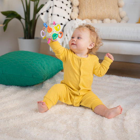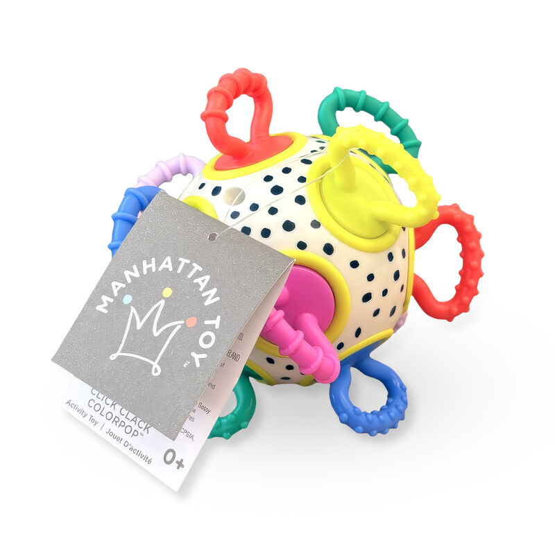 Click Clack Colorpop is a vibrant and engaging toy designed for young children. It features soft plastic handles that make a clicking sound with every twist, paired with a centre ball that contains tiny beads, creating a rattling sound with each shake. This toy is ideal for supporting fine motor development, auditory stimulation, and cause-and-effect learning. It's crafted to be safe for children, free from BPA and PVC, and meets various safety regulations.