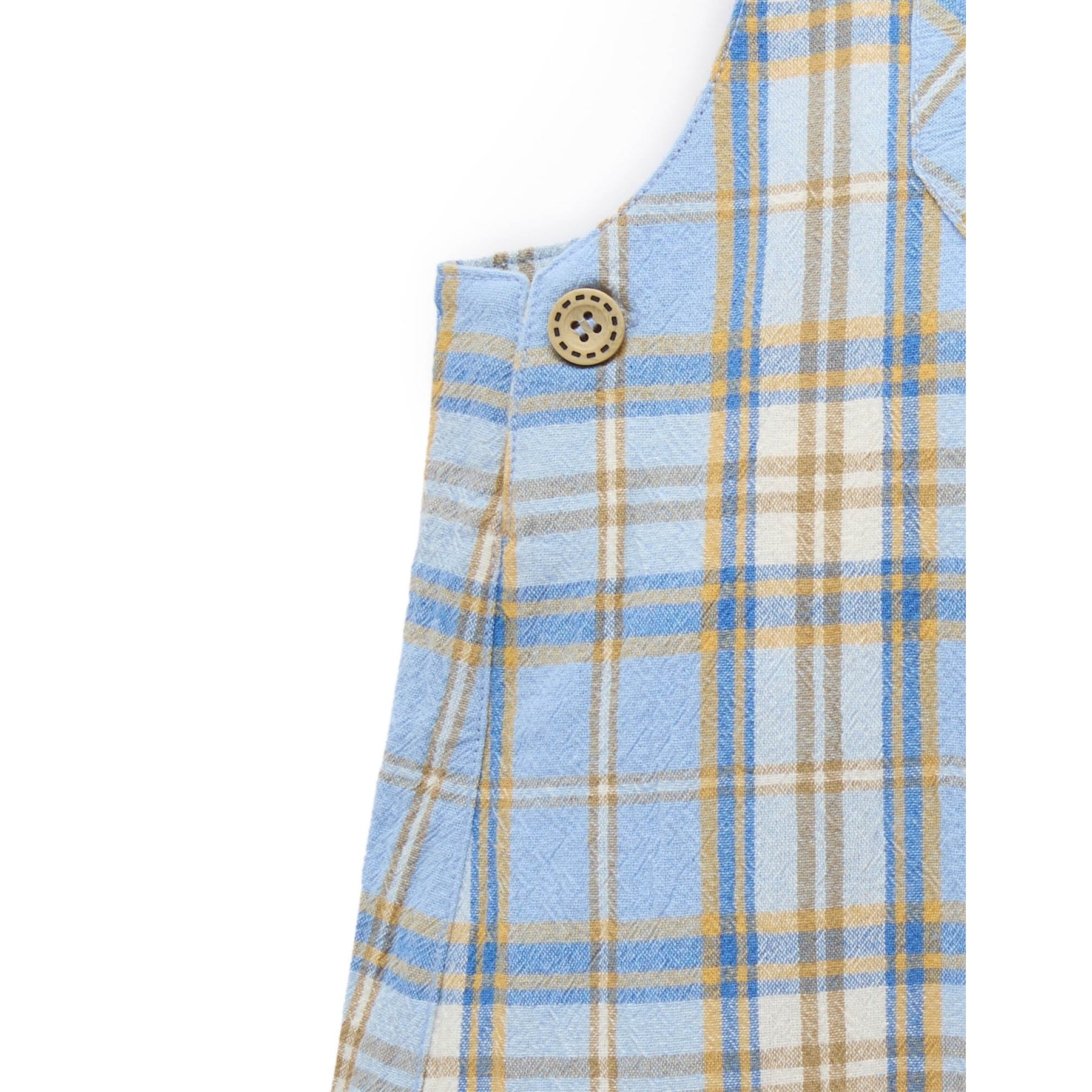 Check Overalls are the perfect transeasonal style, great for layering up and down depending on the weather. Featuring a classic all over check pattern and adjustable straps with wood look buttons. Made from 100% Organic Cotton, these overalls are designed to be roomy and light.