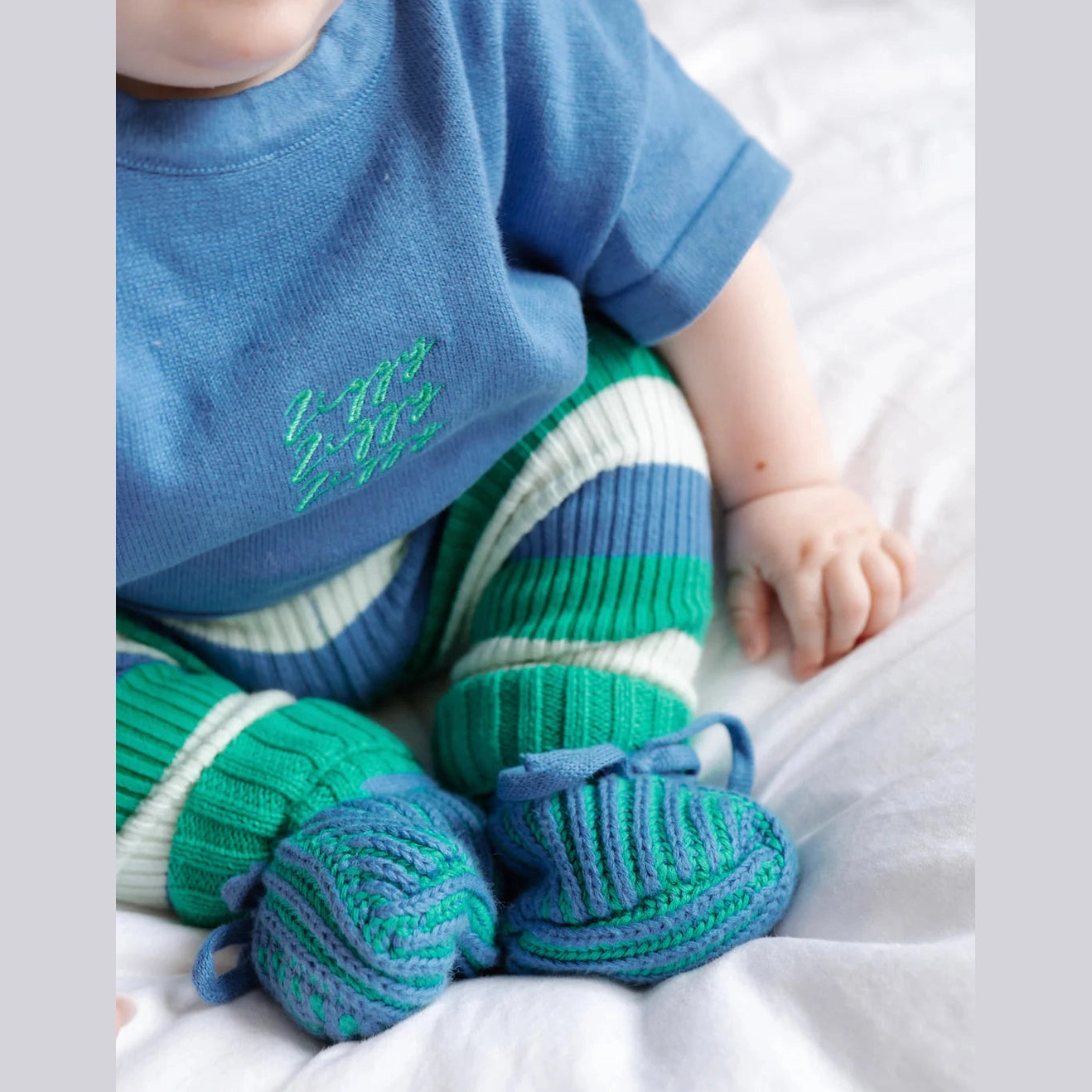 Knitted two tone booties to compliment our Aspen, Olly, Ace, Enzo + Otto Collections. Functional drawstring to ensure booties don't fall off when worn.
