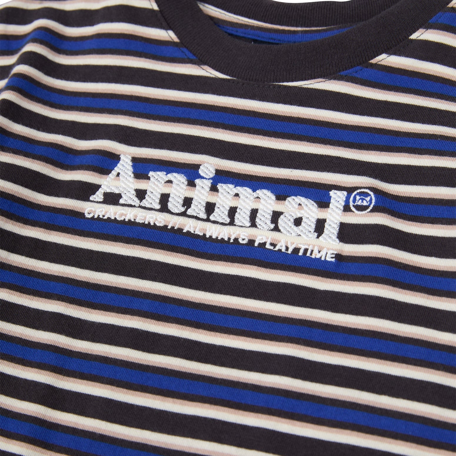 The Blaze Tee by Animal Crackers is a short sleeve tee in our classic relaxed fit. Made from a yarn dyed stripe cotton jersey fabric, it features a chest embroidery, snap button closure at side neck, and branded flag label on side seam. Team back with our Athletics Short for the perfect summer, retro inspired outfit.