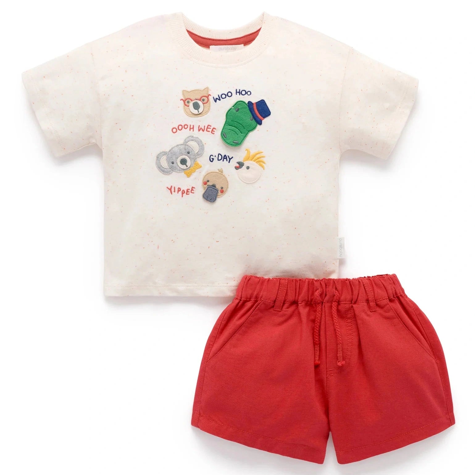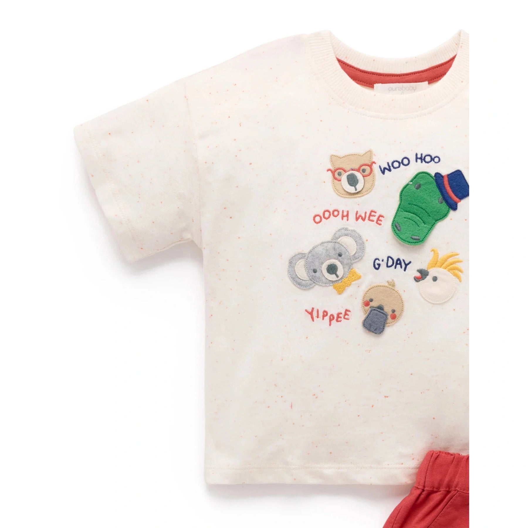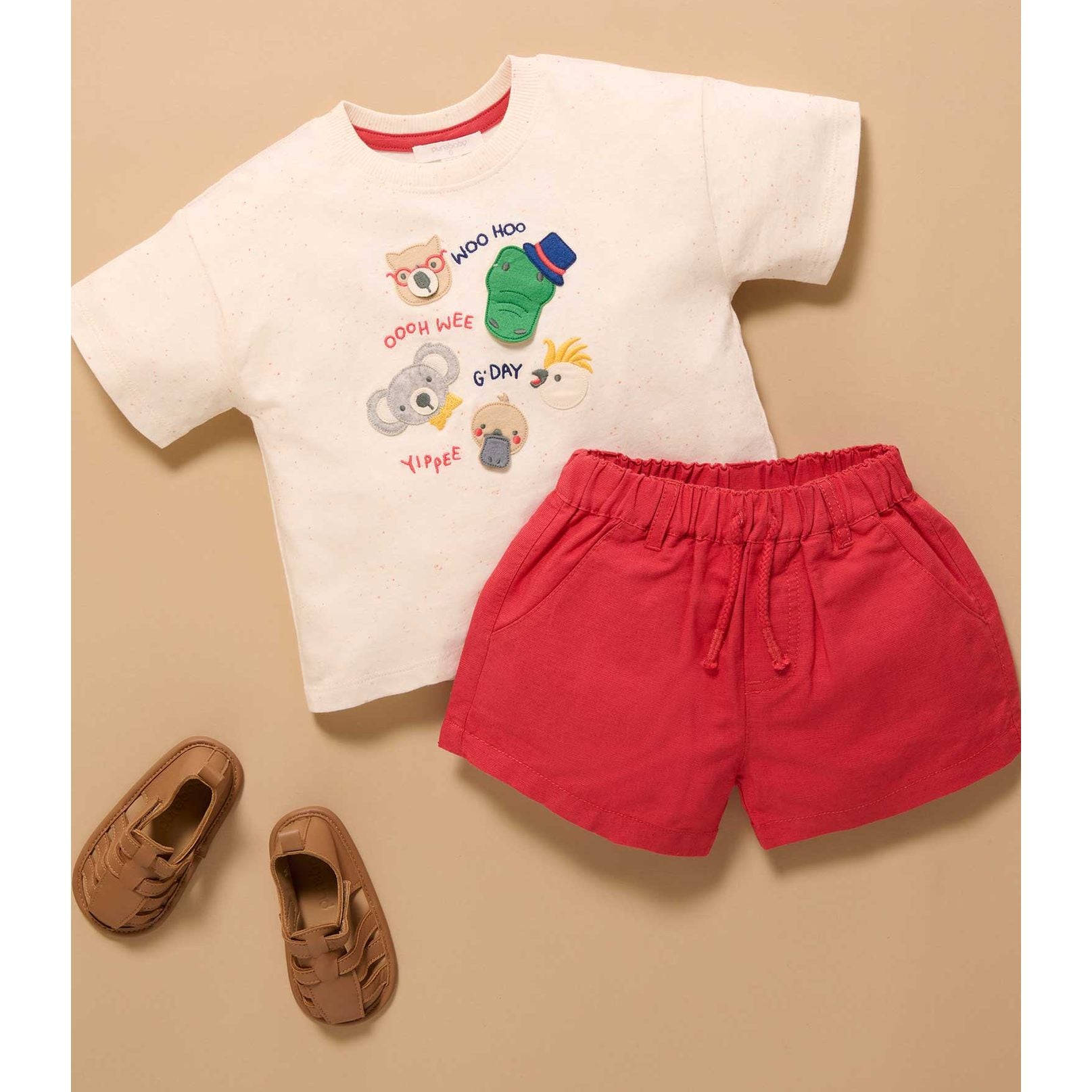 Party Chatter Set is the fun outfit for summer celebrations! Featuring a soft jersey tee with a festive applique of partying animals, and lightweight linen blend shorts. Wear together, or mix and match with your other items.