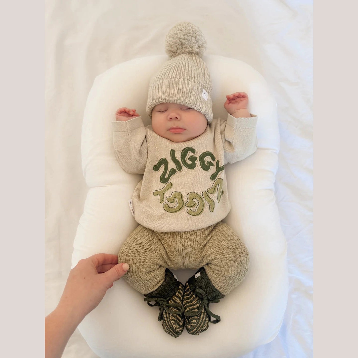 A lightweight, long sleeve knit tee in our Moss colour, featuring our printed Ziggy design on the front. Pair with items from our Valley Collection.